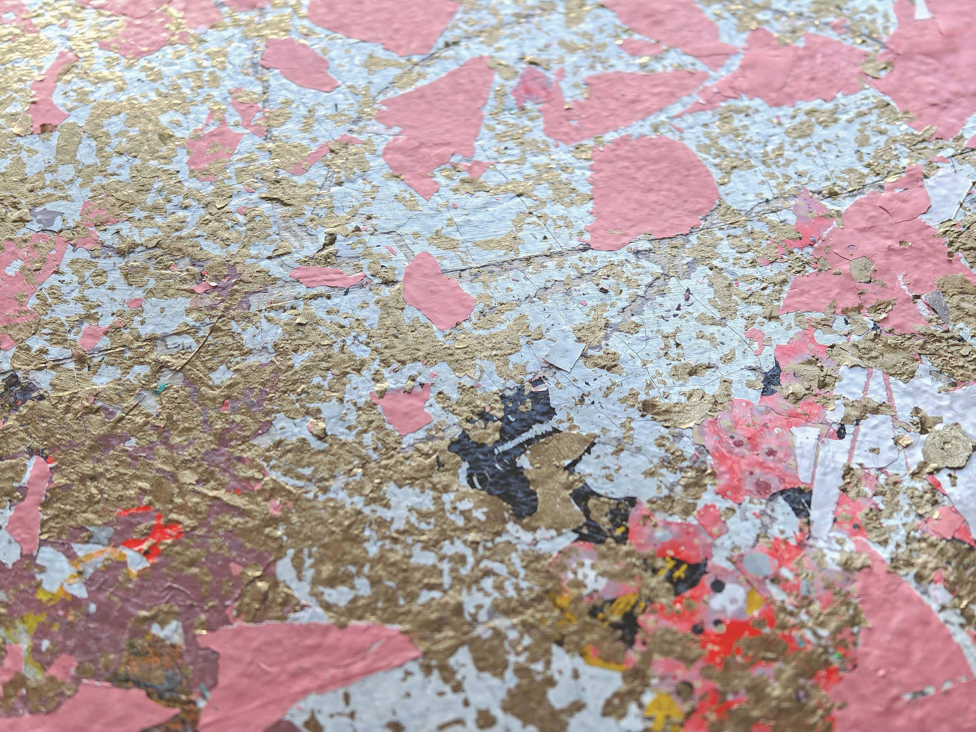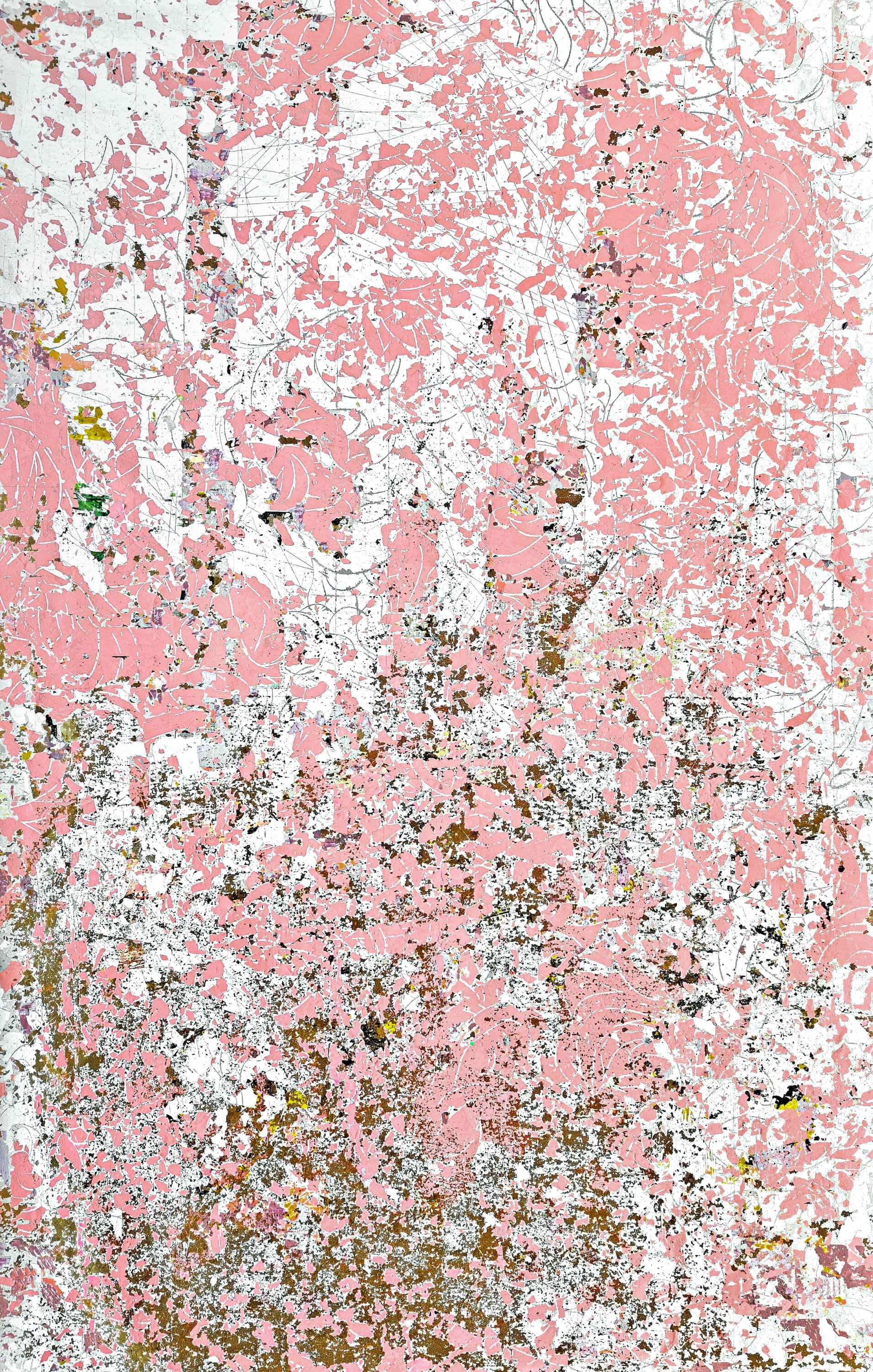 A completely abstract, dynamic composition capturing the moment of an eternal fall. There are no specific forms—only the rhythm of a fracture, where each shard retains the memory of its former unity.