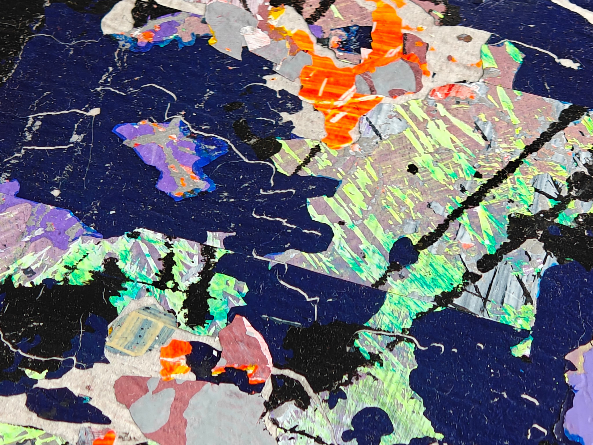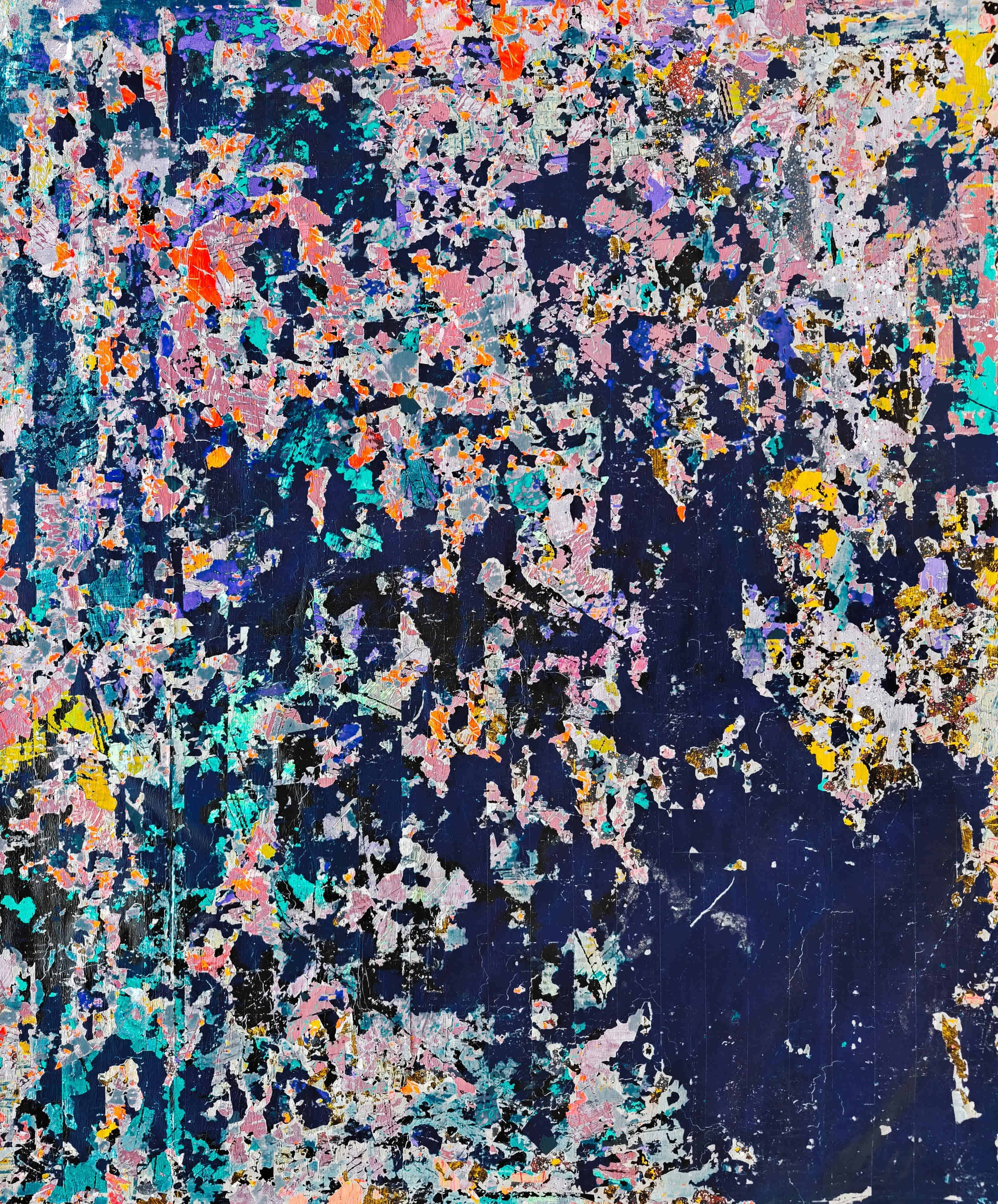 Авторский метод многослойного нанесения позволяет создать эффект «жидкой» глубины, где каждый новый слой изменяет восприятие предыдущих. Прозрачные и плотные участки взаимодействуют как вода и свет. Микрорельеф поверхности улавливает свет под разными углами.